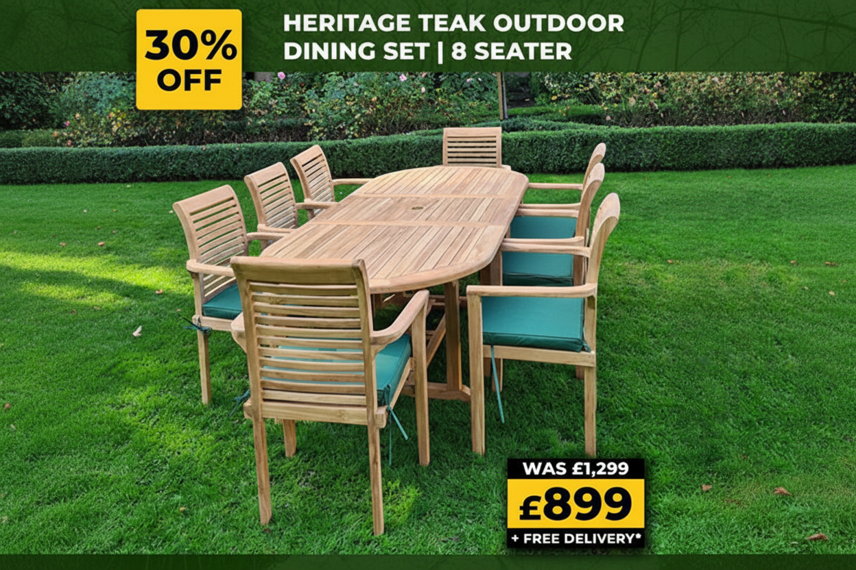 Heritage (Heavy Duty) | Teak Wood Outdoor Dining Set | 8 Seater | With Weatherproof Cushions