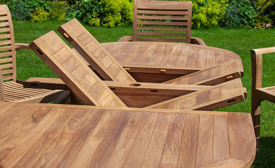 Yes. A-grade teak naturally contains oils that make it highly resistant to rain, frost, and sun. Unlike cheaper materials, it won't rot, warp, or rust. You can leave it outside year-round with no need for winter storage.