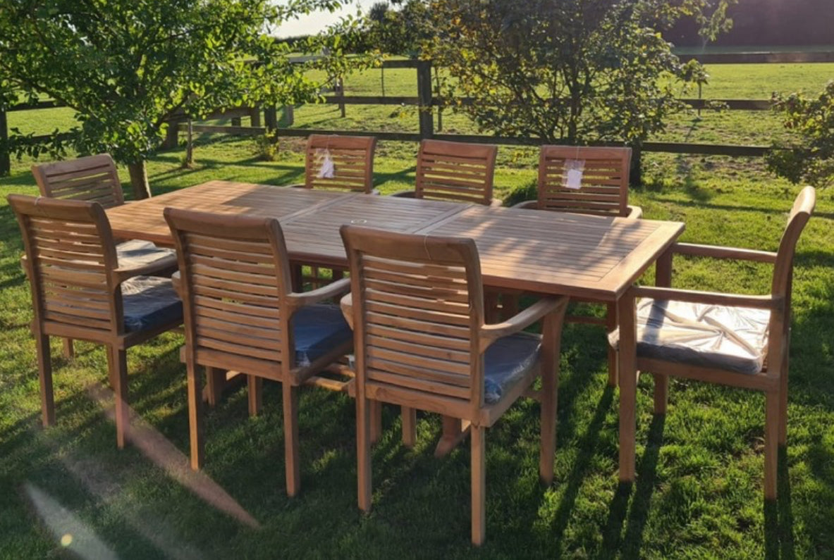 Kensington Teak Wood Outdoor Dining Set | 8 Seater | With Weatherproof Cushions