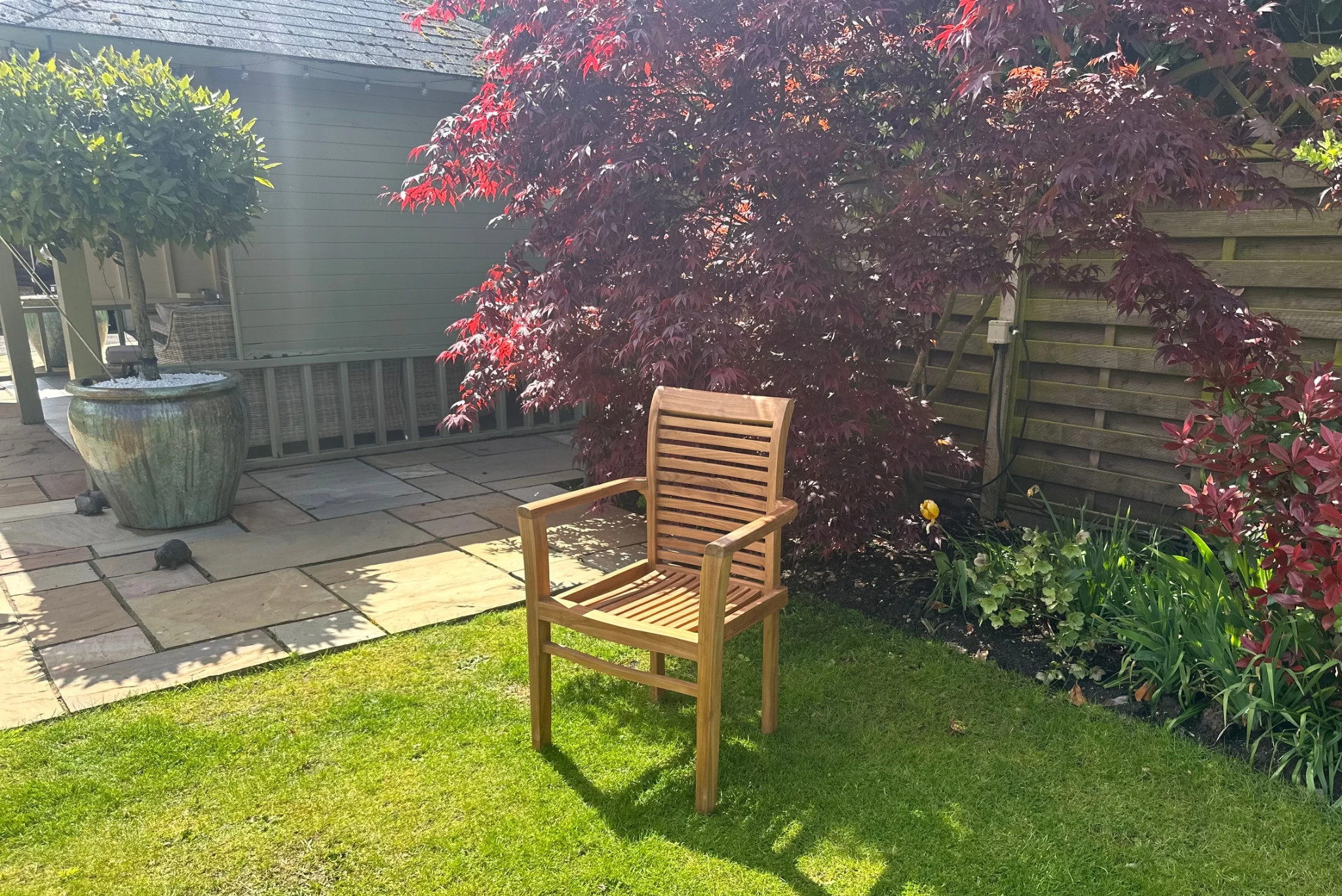 Yes. A-grade teak naturally contains oils that make it highly resistant to rain, frost, and sun. Unlike cheaper materials, it won't rot, warp, or rust. You can leave it outside year-round with no need for winter storage.