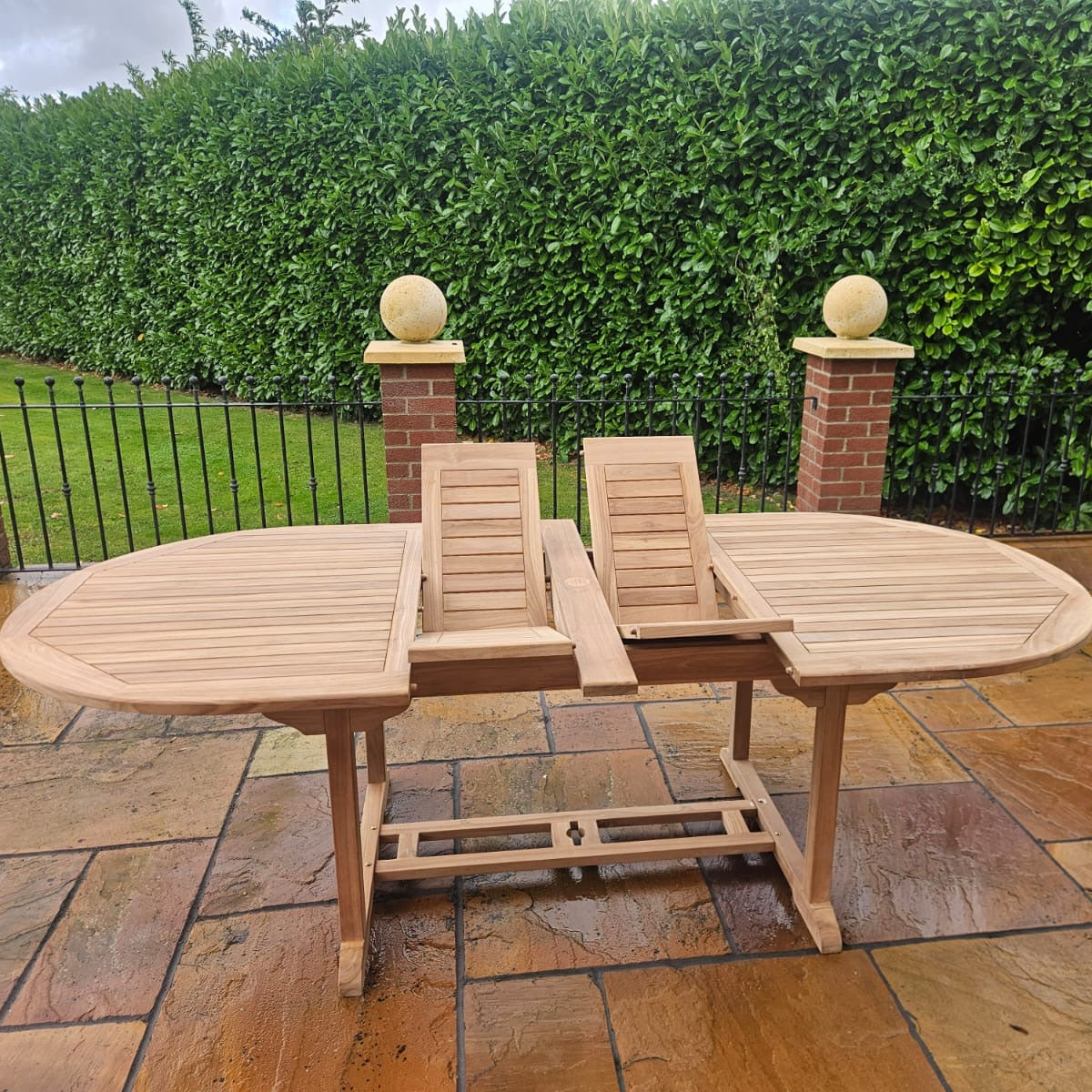 Yes. A-grade teak naturally contains oils that make it highly resistant to rain, frost, and sun. Unlike cheaper materials, it won't rot, warp, or rust. You can leave it outside year-round with no need for winter storage.