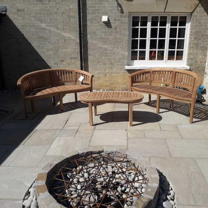 Yes. A-grade teak naturally contains oils that make it highly resistant to rain, frost, and sun. Unlike cheaper materials, it won't rot, warp, or rust. You can leave it outside year-round with no need for winter storage.