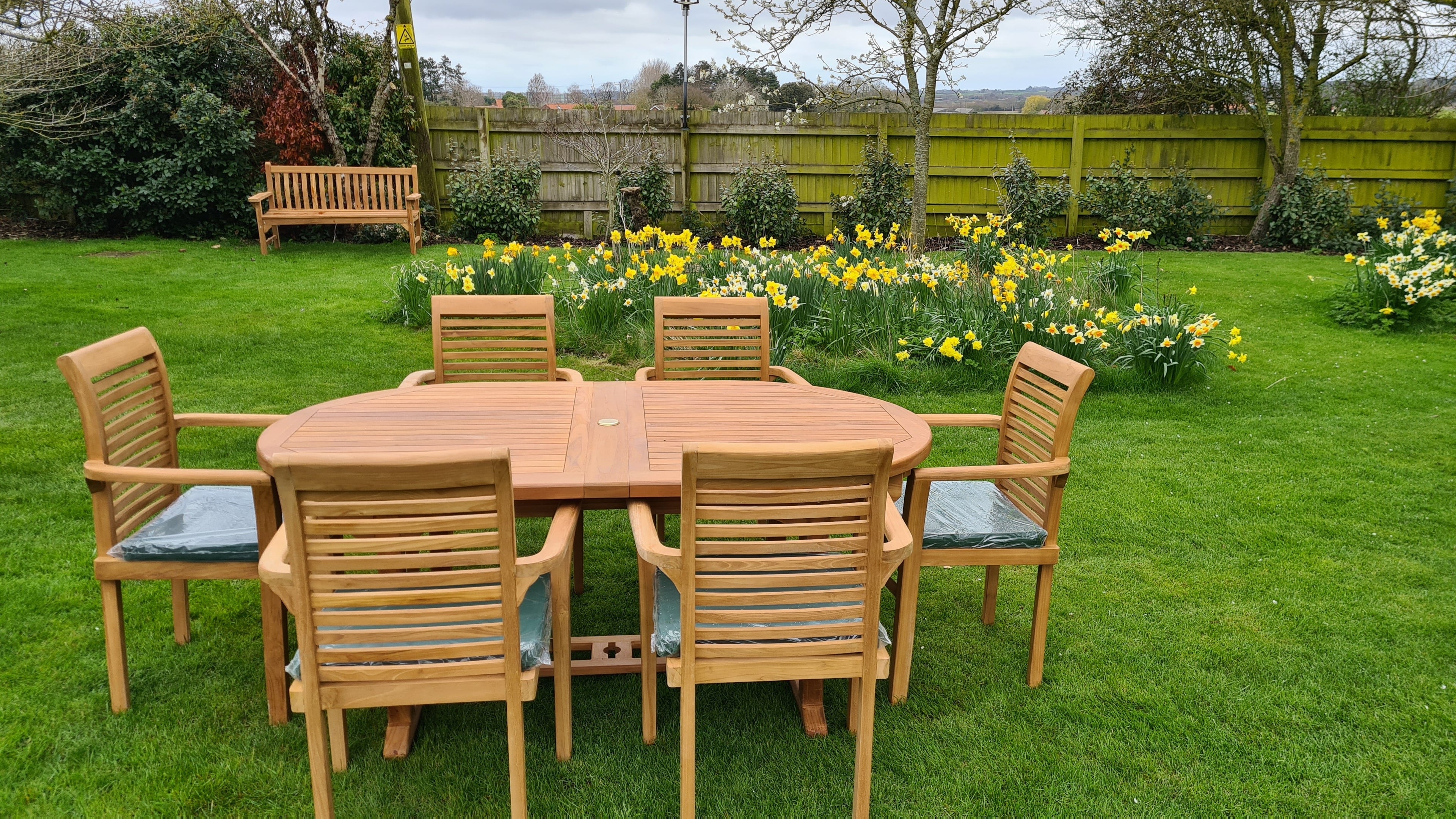 Yes. A-grade teak naturally contains oils that make it highly resistant to rain, frost, and sun. Unlike cheaper materials, it won't rot, warp, or rust. You can leave it outside year-round with no need for winter storage.