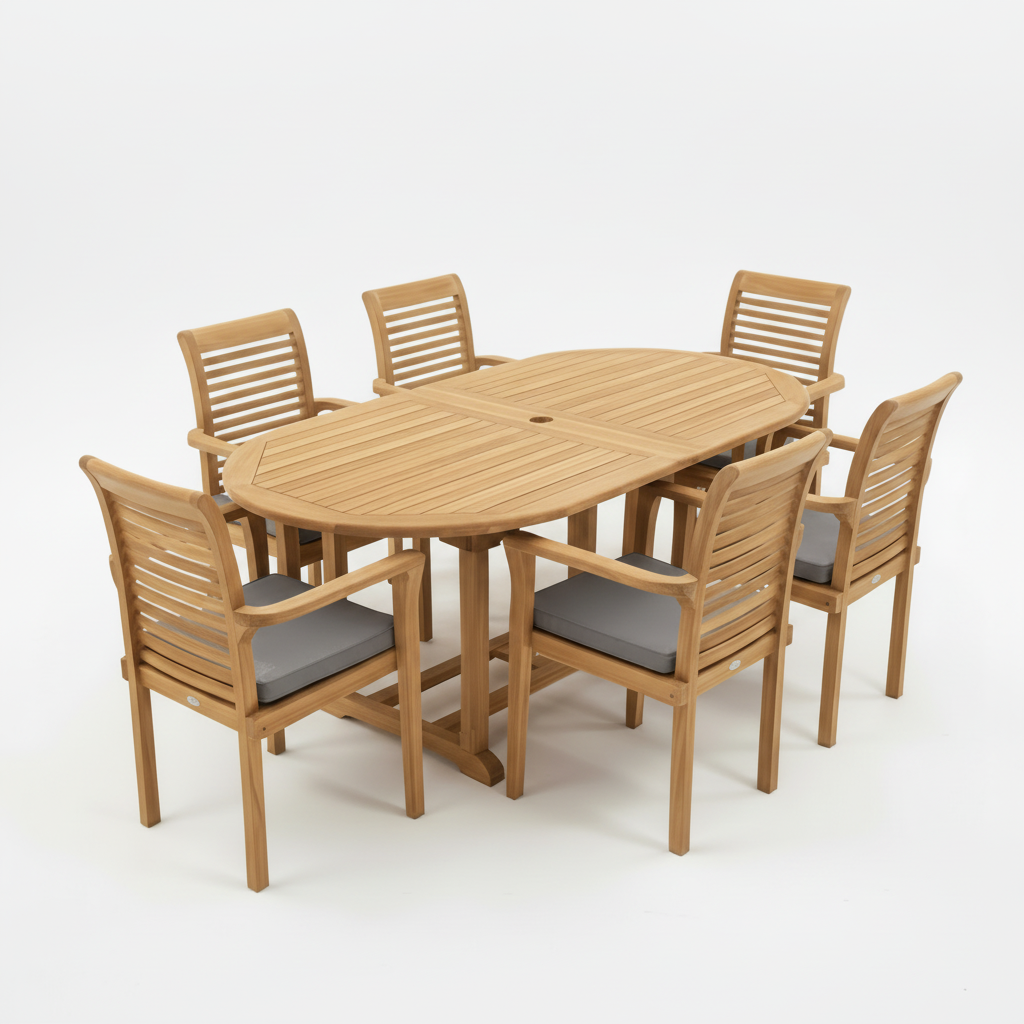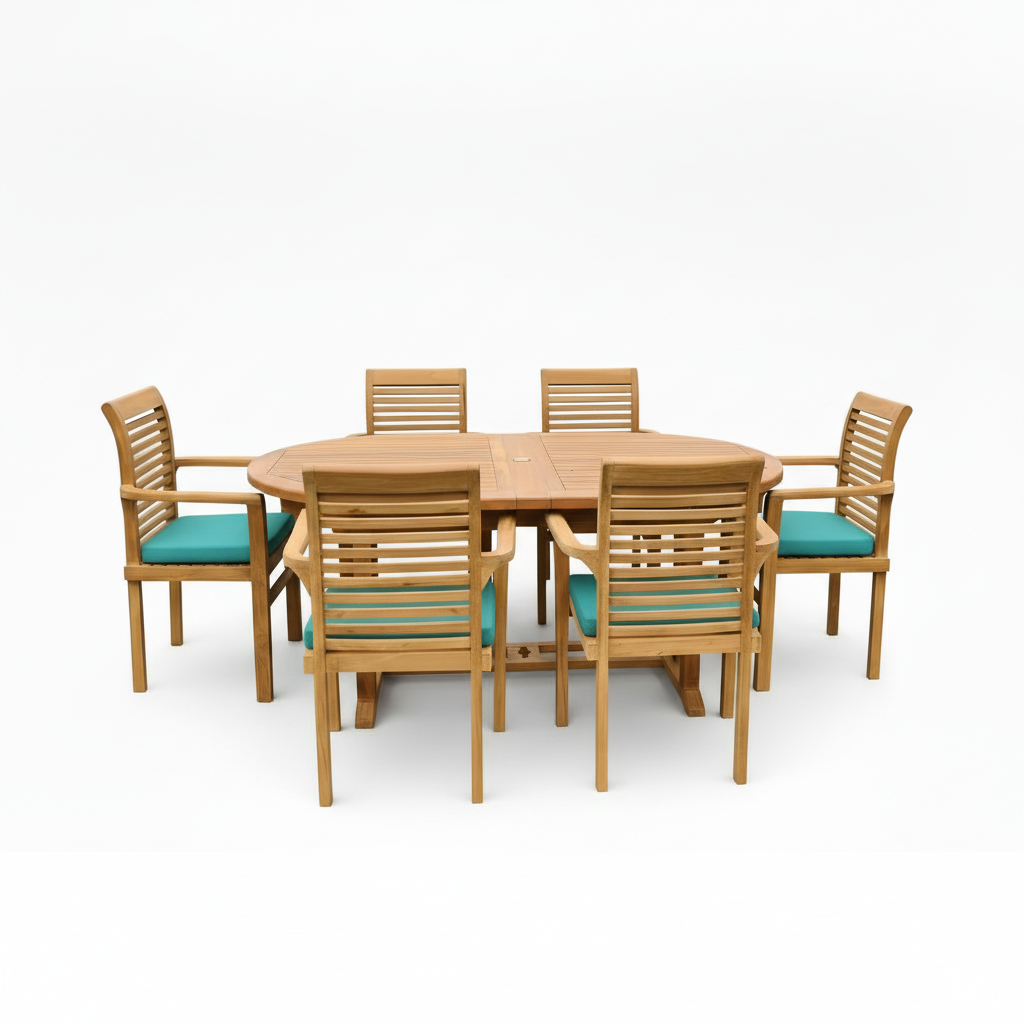 Heritage Teak Wood Outdoor Dining Set | 6 Seater | With Weatherproof Cushions