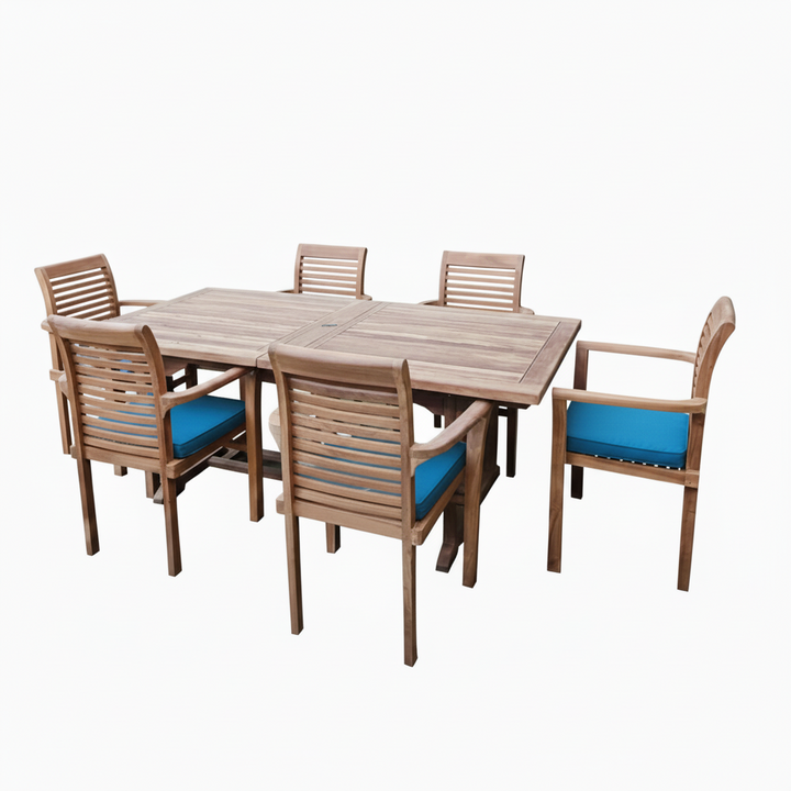 Kensington (Heavy Duty) Teak Wood Outdoor Dining Set | 6 Seater | With Weatherproof Cushions