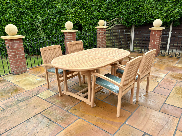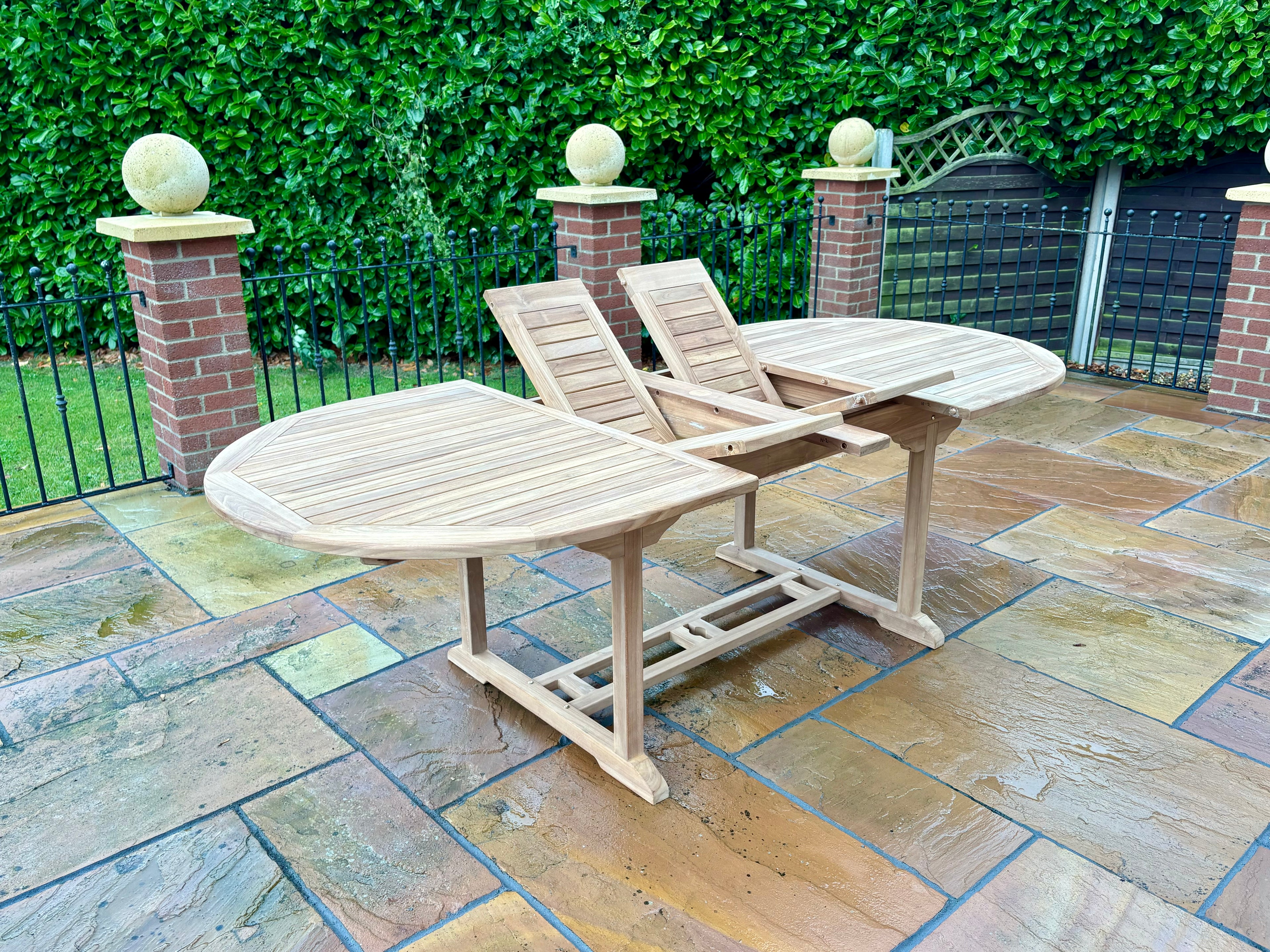 Yes. A-grade teak naturally contains oils that make it highly resistant to rain, frost, and sun. Unlike cheaper materials, it won't rot, warp, or rust. You can leave it outside year-round with no need for winter storage.