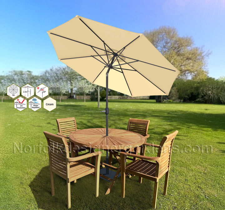 Yes. A-grade teak naturally contains oils that make it highly resistant to rain, frost, and sun. Unlike cheaper materials, it won't rot, warp, or rust. You can leave it outside year-round with no need for winter storage.
