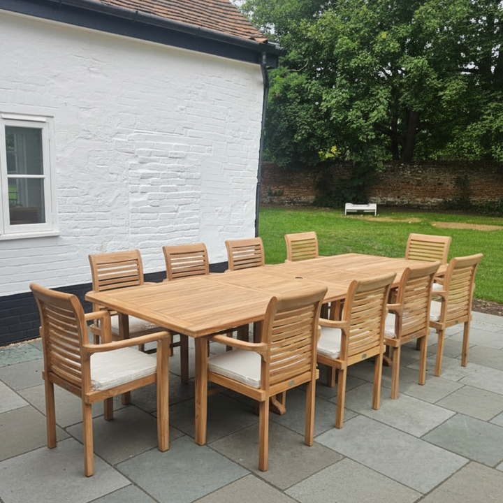 Kensington (XL) Teak Wood Outdoor Dining Set | 10 Seater | With Weatherproof Cushions